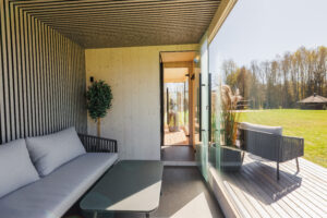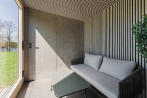 Our most compact fully functional modular sauna with a small anteroom and a spacious sauna room.
